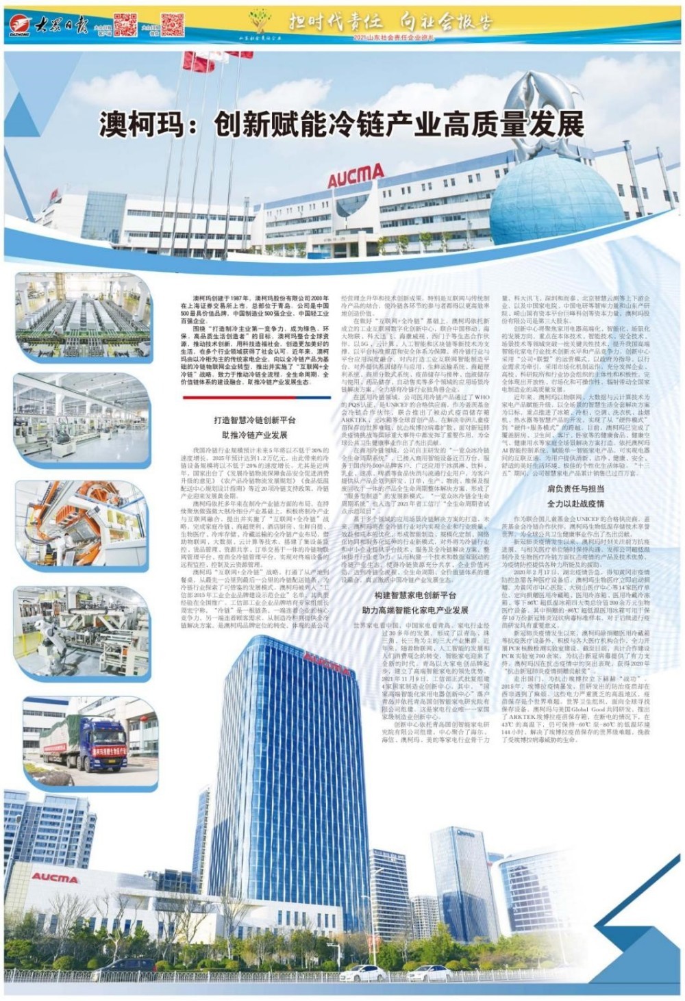 澳柯瑪入選“2021山東社會責任企業”